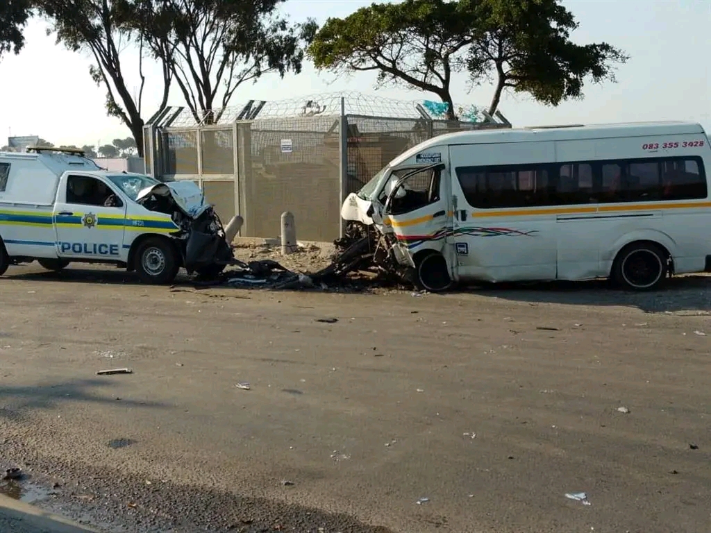 “According to reports, the accident happened along Klipfontein Road in NY 108, when a Toyota Quantum taxi overtook two vehicles at high speed, and collided with the SAPS vehicle,” said Van Wyk.